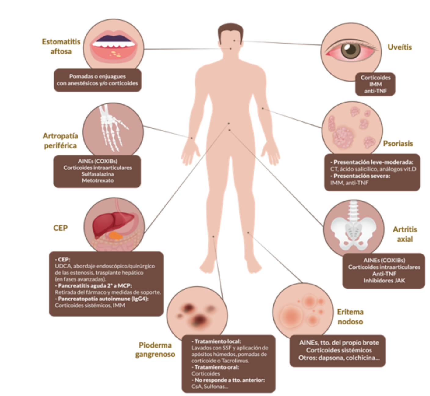 2.-EducaInflamatoria. (s.f.). Manifestaciones extraintestinales. EducaInflamatoria.com. Recuperado de https://educainflamatoria.com/category/manifestaciones-extraintestinales/